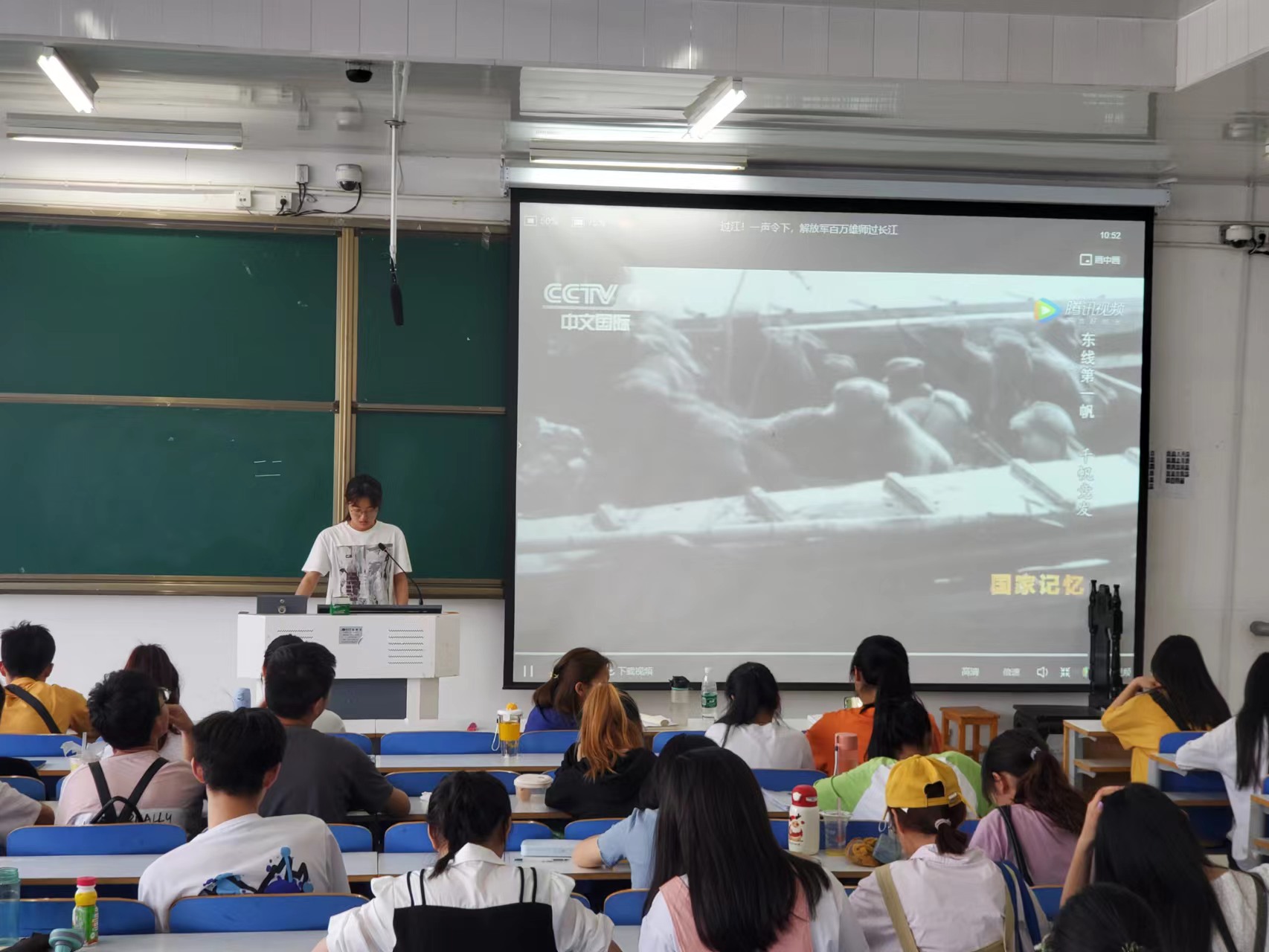 孙雅娴在会上带领同学感悟渡江精神,凝聚前行力量。她表示,青年学子不仅要铭记往昔峥嵘岁月,缅怀革命先辈为新中国的建立做出的丰功伟绩,更要从中凝聚起干事创业的前进力量。她强调,青年学子应继续传承弘扬“坚定信念、不怕牺牲、军民同心、革命到底”的渡江精神,将红色基因融入时代、融入血脉、融入学习,打赢新时代的“渡江战役”,为实现中华民族伟大复兴努力奋斗。