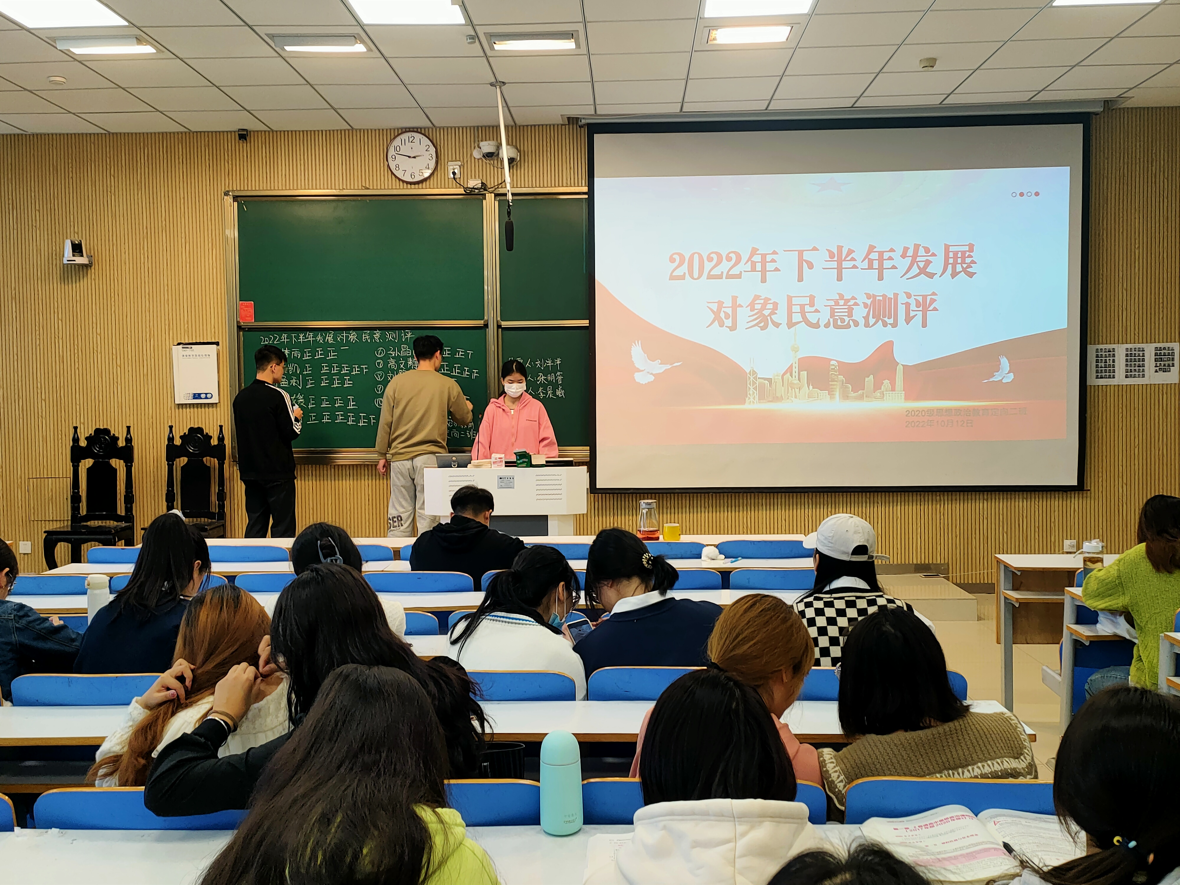 10月13日下午,小说狂人 2020级思想政治教育定向二班在社科楼515教室召开2022年下半年党员发展对象民意测评会。定向二班全体同学共同参与此次会议。会议由团支书李晨曦主持。