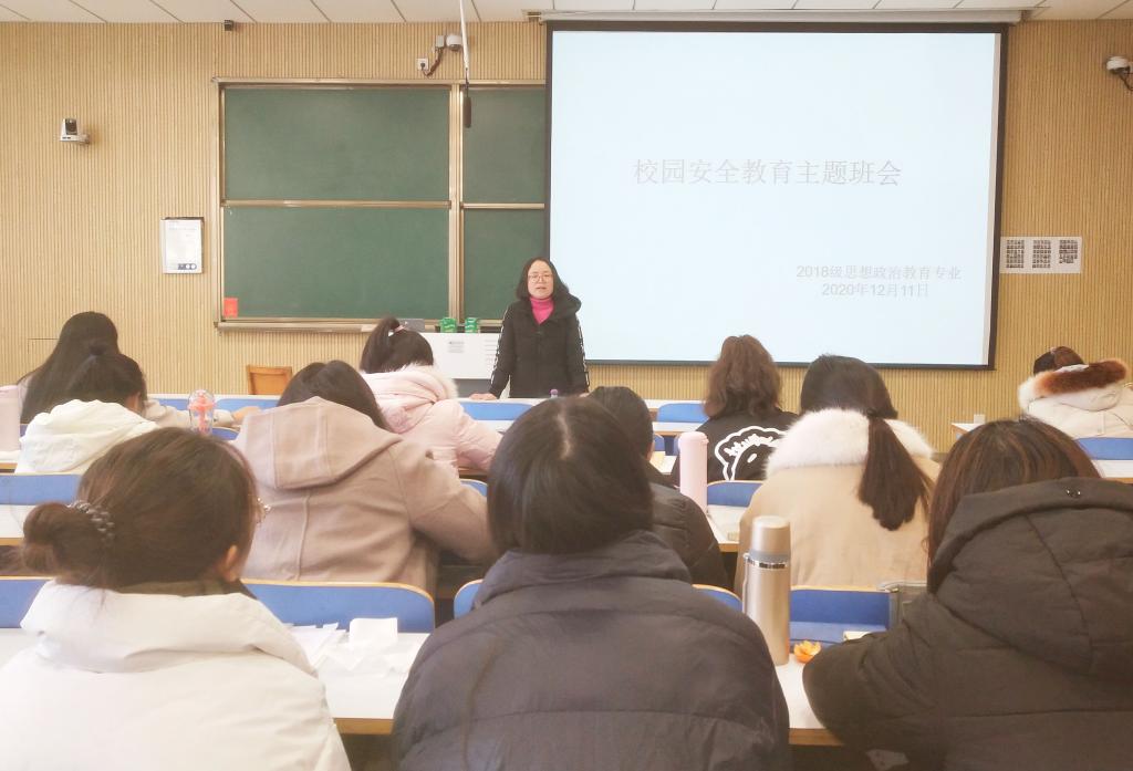 12月11日下午,小说狂人 2018级思想政治教育团支部在社科楼515教室顺利开展校园安全教育主题班会。辅导员曹菁菁、2018级思想政治教育团支部全体成员共同参加了本次班会。会议由2018级思想政治教育第二团支部副书记杨康主持。