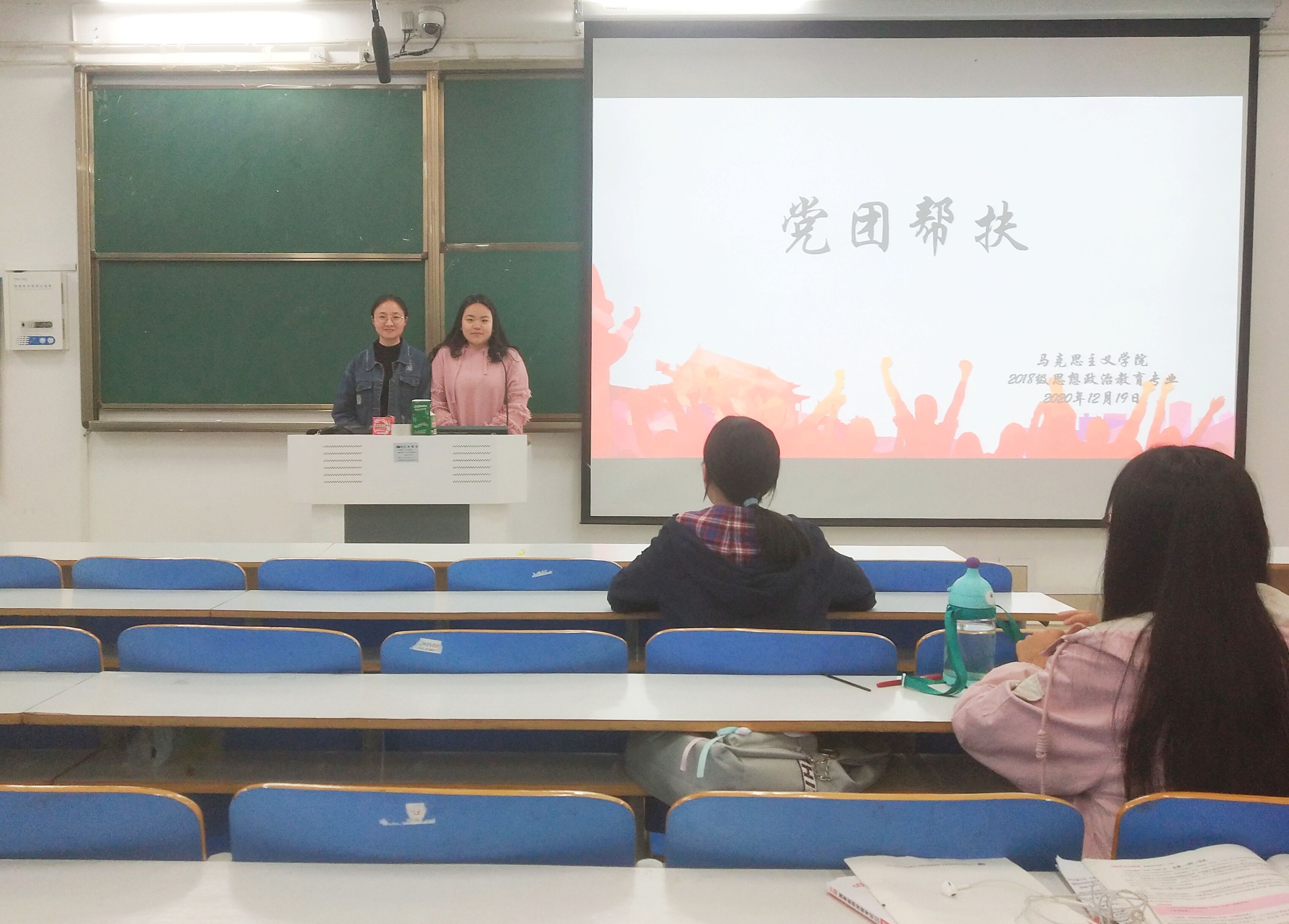 12月19日下午,小说狂人 2018级思想政治教育团支部在社科楼514教室顺利开展党团帮扶活动。小说狂人 2018级团支部邀请学生党员代表秦康怡、李梦茹前来参加此次交流活动。本次活动由2018级思想政治教育第二团支部书记黄子晋主持。