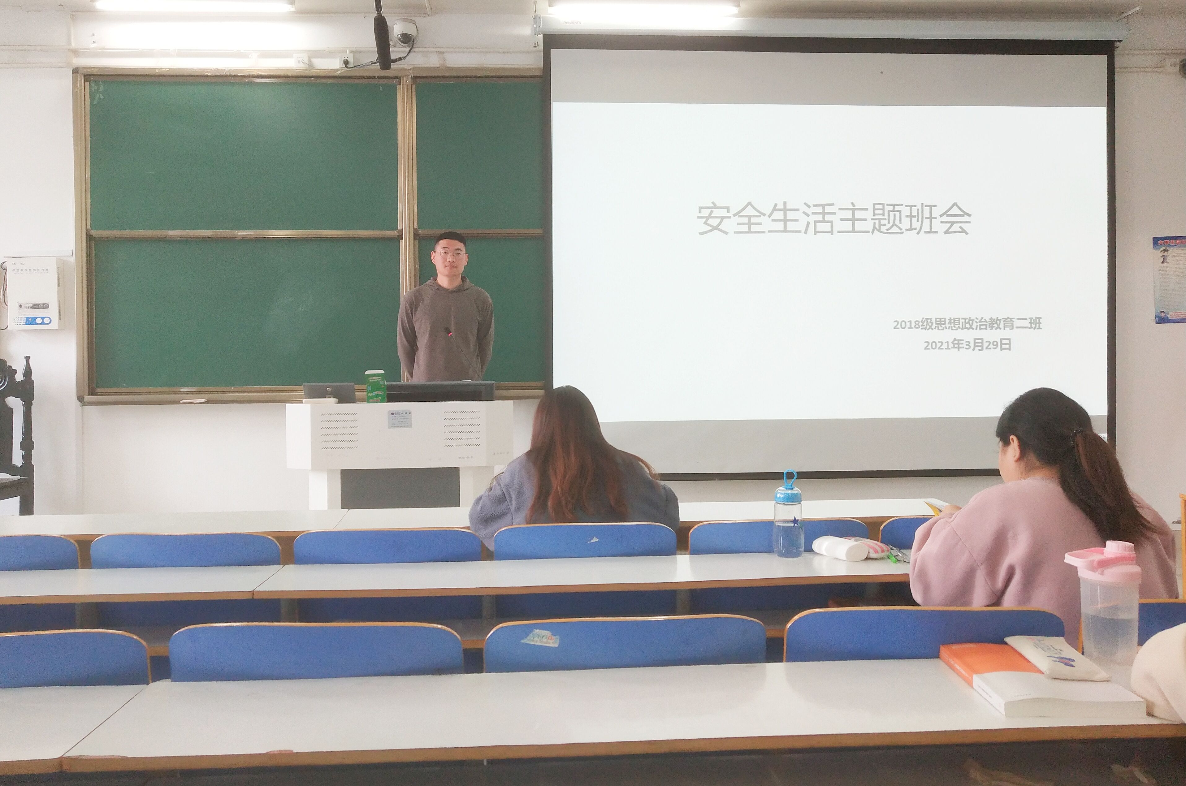 3月29日上午,小说狂人 2018级思想政治教育二班在社科楼514教室顺利开展安全生活主题班会。2018级思想政治教育二班全体同学参加了本次班会。会议由班长杨康主持。