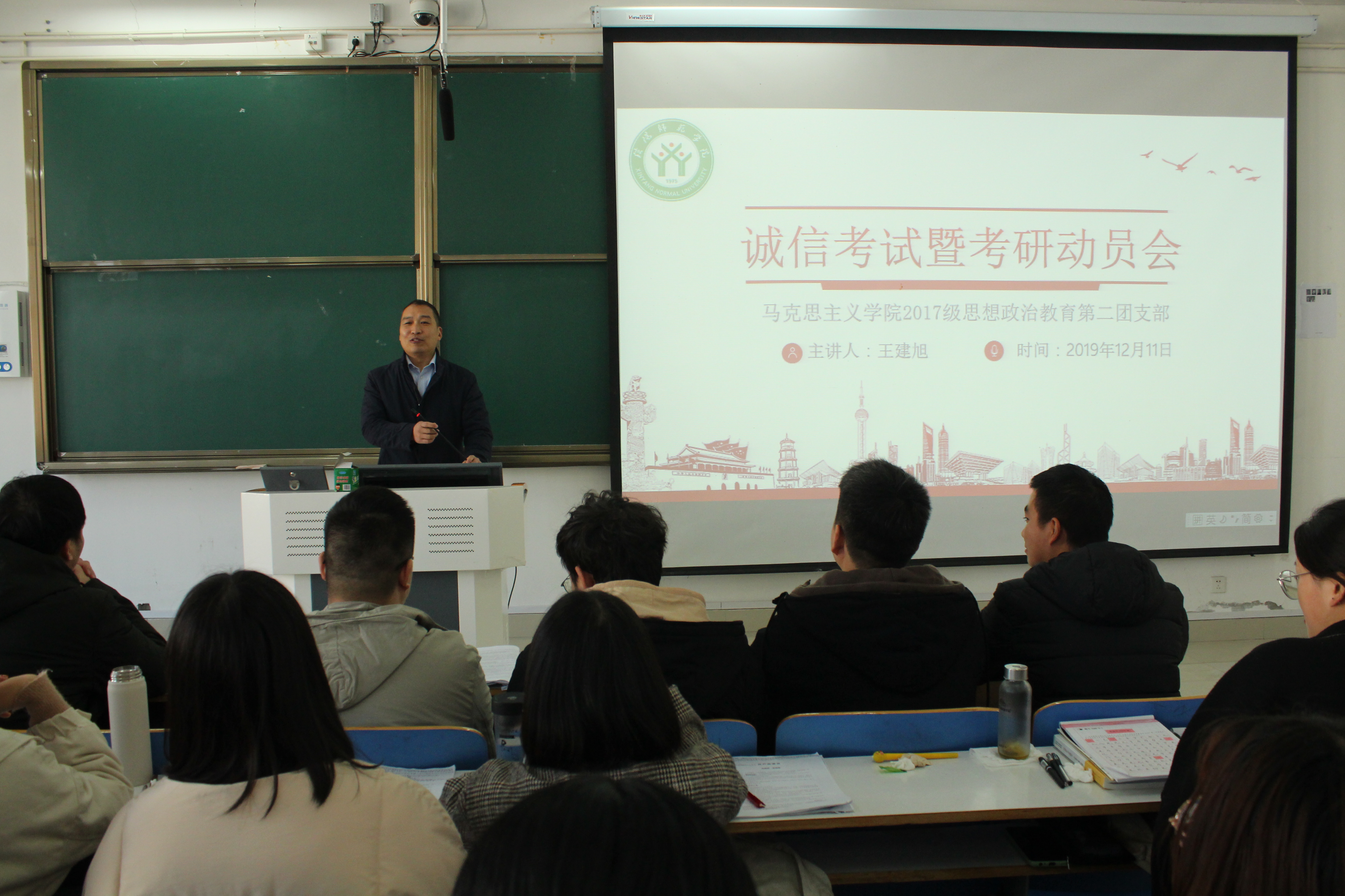 为强化纪律意识,充分调动学生的学习积极性,进一步坚定考研信心、明确目标方向。12月11日上午,小说狂人 2017级思想政治教育第二团支部在社科楼516教室顺利开展了诚信考试暨考研动员会。团支部第一支部书记王建旭,班级辅导员孙绪曙及2017级第二团支部全体成员共同参加。会议由孙绪曙主持。