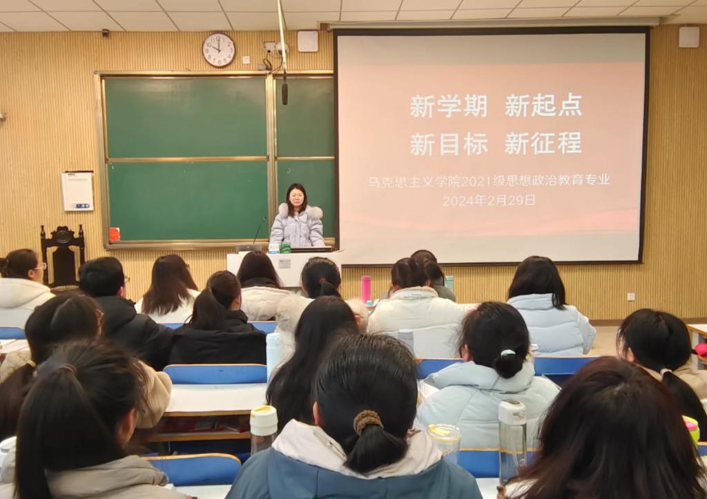 2月29日上午,小说狂人 2021级思想政治教育三班、四班在社科楼515教室召开“新学期,新起点,新目标,新征程”主题班会。辅导员高小佳及2021级思想政治教育全体学生共同参加本次班会。班会由辅导员高小佳主持。