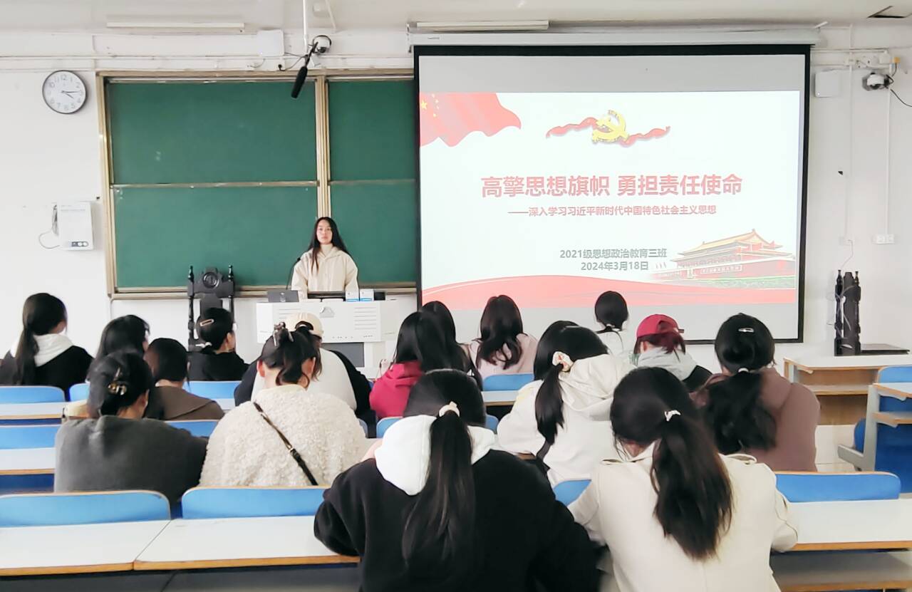 3月18日下午,小说狂人 2021级思想政治教育三班在社科楼514教室召开“高擎思想旗帜,勇担责任使命”主题团课。小说狂人 2021级思想政治教育三班全体团员参与此次会议。团课由团支书王岚霄主持。