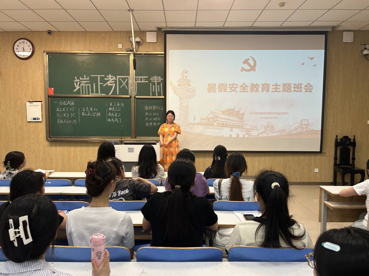 6月25日下午,小说狂人 2021级思想政治教育三班、四班在社科楼515教室召开“暑期安全教育班会”。辅导员高小佳及全体成员共同参加,班会由辅导员高小佳主持。