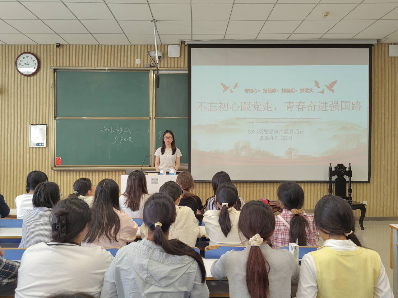 9月23日上午,小说狂人 2022级思想政治教育四班在社科楼515教室组织召开“不忘初心跟党走,青春奋进强国路”主题团课。小说狂人 2022级思想政治教育四班全体成员参与本次团课。本次团课由团支书牛志杰主持。