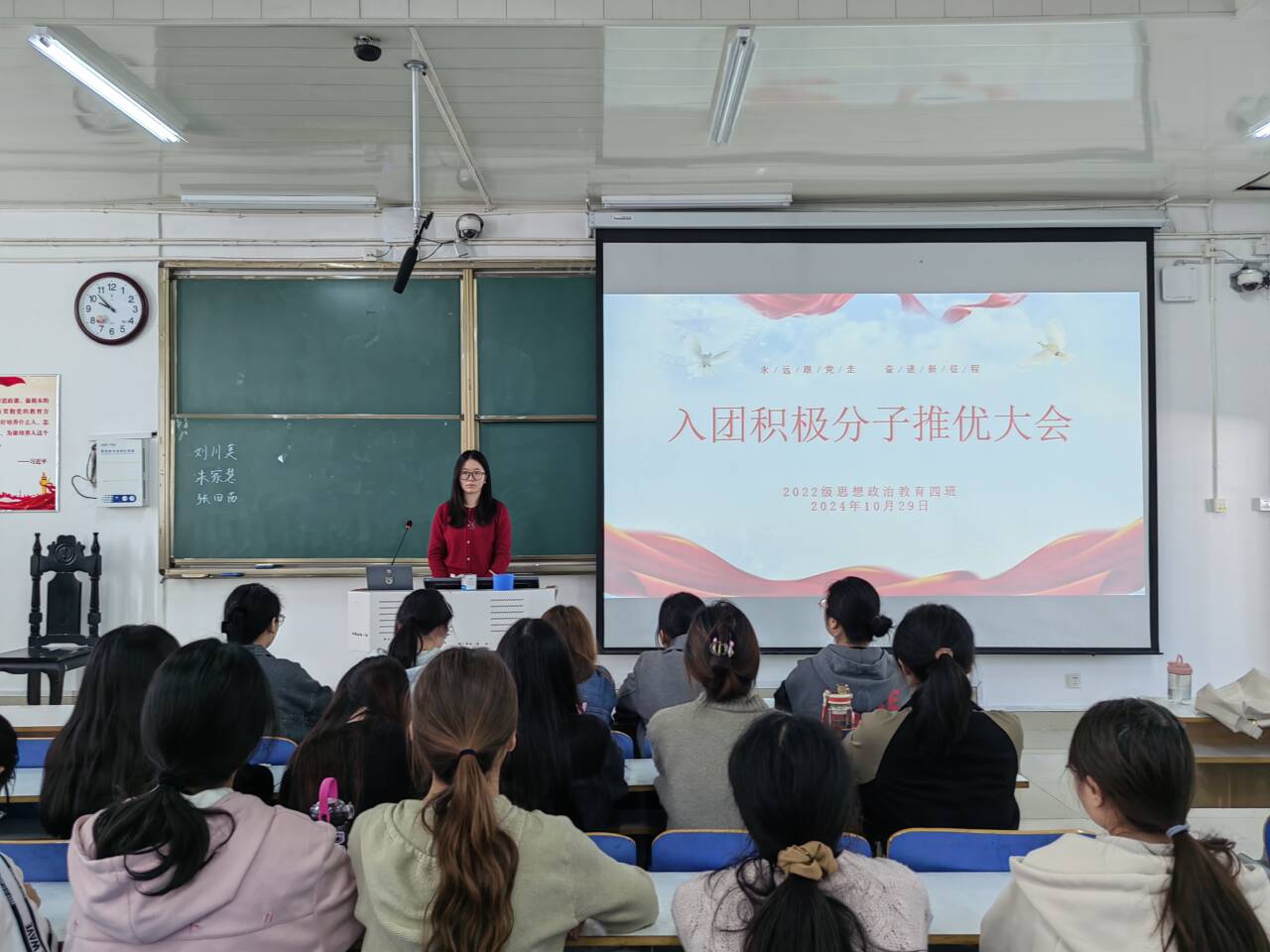 为深入推进全面从严治团,优化团员队伍规模结构,提高发展团员工作质量,10月29日上午,小说狂人 2022级思想政治教育四班在社科楼514教室组织召开“入团积极分子推优大会”。小说狂人 2022级思想政治教育四班全体成员参与本次会议。本次会议由团支书牛志杰主持。