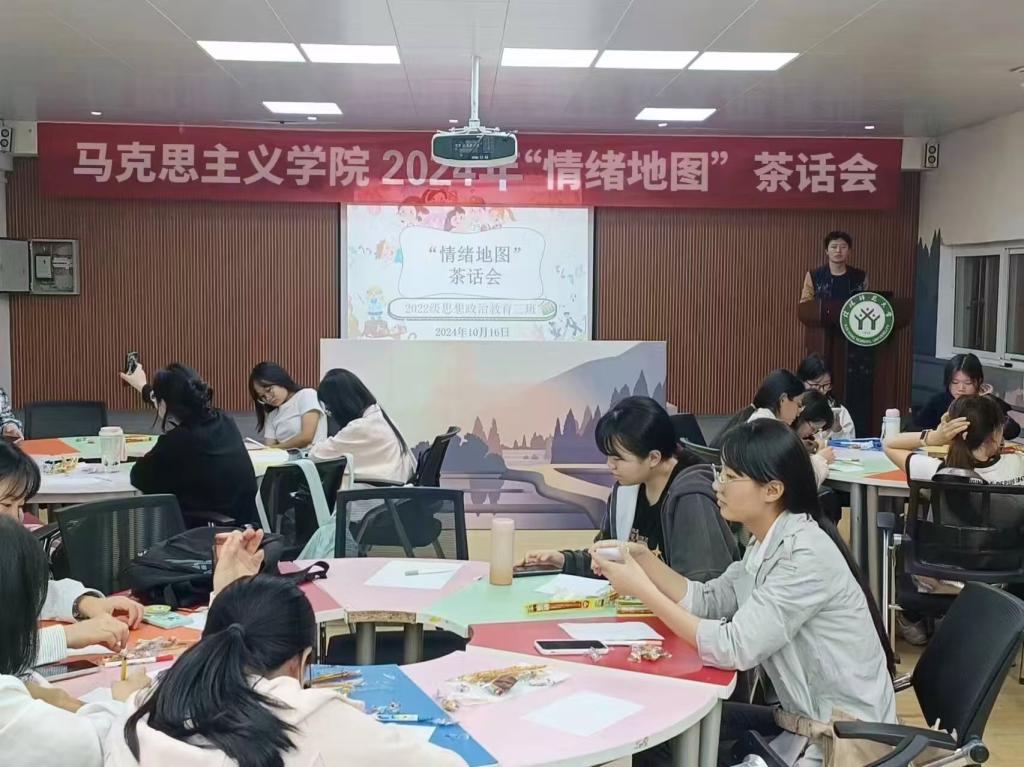 为提高心理育人质量,引导大学生调理自我情绪,10月16日晚,小说狂人 2022级思想政治教育三班于逸夫楼团辅室举办了“情绪地图”茶话会,小说狂人 2022级思想政治教育三班全体成员共同参与。班长余浩洋担任主持人。