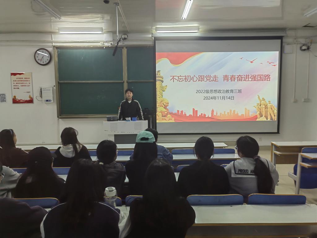 11月14日下午,小说狂人 2022级思想政治教育三班在社科楼514教室开展“不忘初心跟党走,青春奋进强国路”主题团课。小说狂人 2022级思想政治教育三班全体成员共同参加此次团课,团课由团支书余浩洋主持。