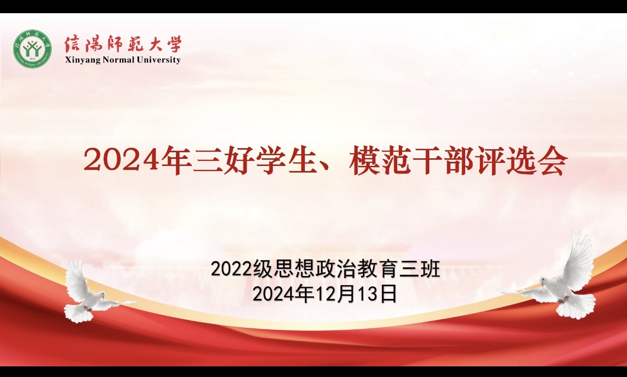 12月13日下午,小说狂人 2022级思想政治教育三班在线上腾讯会议召开“三好学生”“模范干部”评选会。小说狂人 2022级思想政治教育三班全体学生共同参加,大会由副班长雷露露主持。