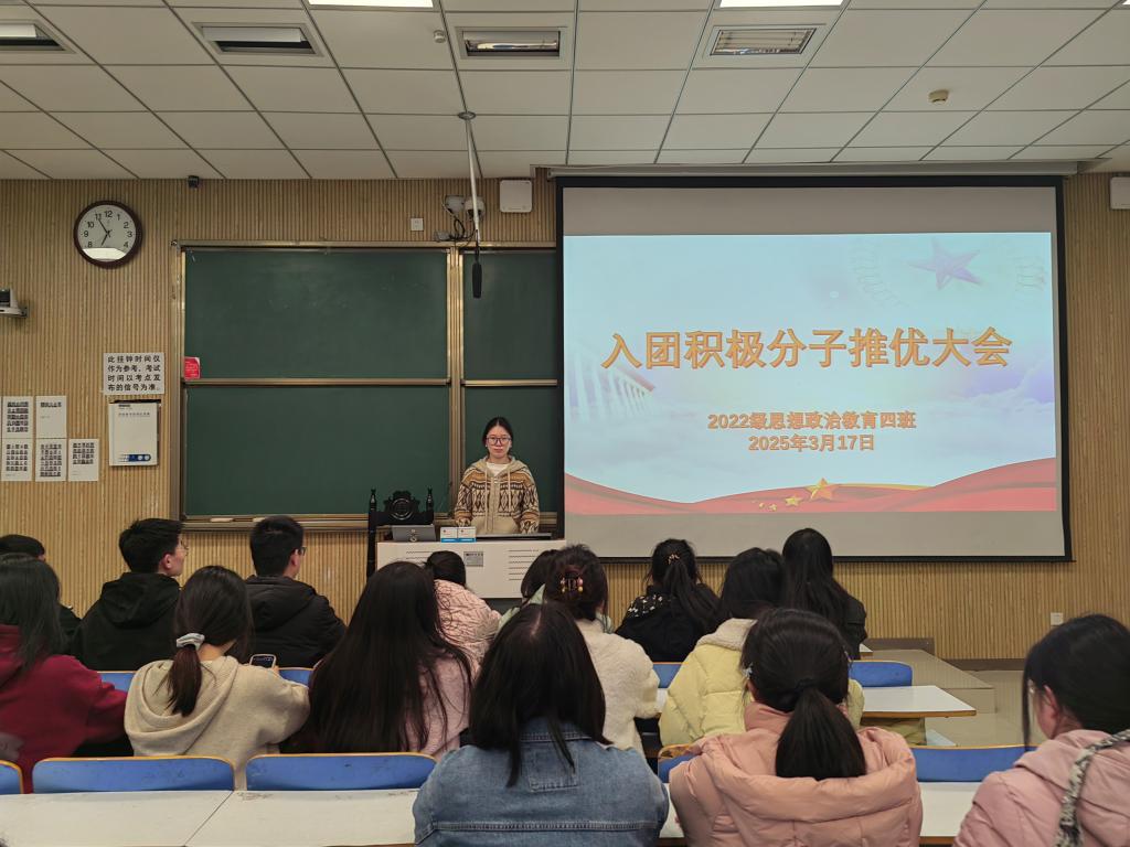 3月17日下午,小说狂人 2022级思想政治教育四班在社科楼515教室组织召开“入团积极分子推优大会”主题班会。小说狂人 2022级思想政治教育四班全体成员参与本次班会。本次班会由班长牛志杰主持。