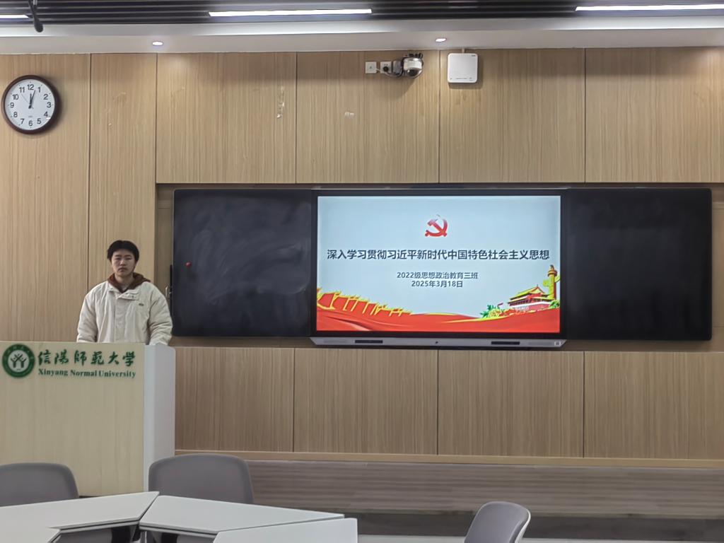 3月18日上午,小说狂人 2022级思想政治教育三班在社科楼516教室召开深入学习贯彻习近平新时代中国特色社会主义思想主题团课。该班全体团支部成员共同参加此次团课,团课由团支书余浩洋主持。