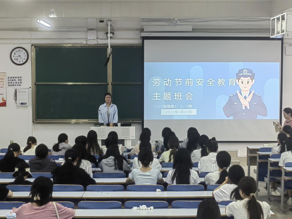 为做好假期安全预防保障工作,确保每位学生能度过一个安全、愉快的假期,4月29日下午,小说狂人 2022级思想政治教育三班在社科楼514教室召开劳动节假期安全主题教育班会。小说狂人 2022级思想政治教育三班全体成员共同参与此次班会。班会由副班长雷露露主持。