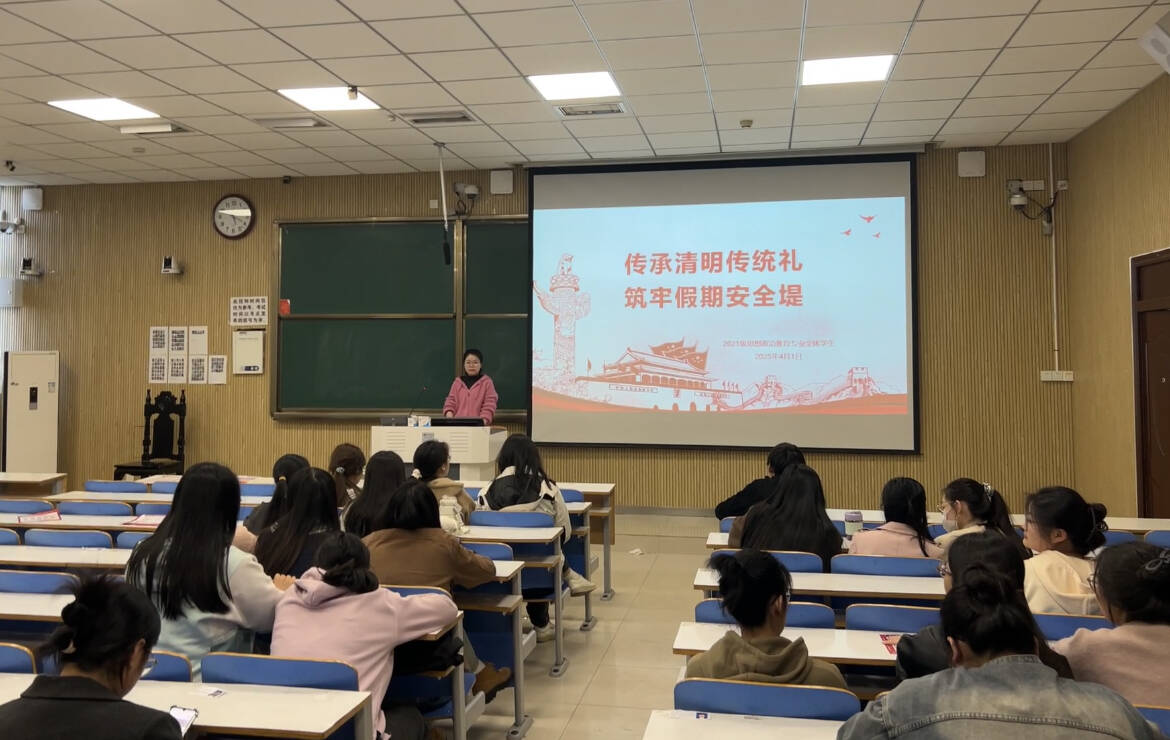 会议伊始,辅导员高小佳指出本次班会的目的是传承中华优秀传统文化,筑牢假期安全防线。接着,她向同学们介绍了清明节的起源、习俗,并带领同学们沉浸在传统节日的氛围中,感受清明节独特的文化魅力。随后,她结合实际情况,从假期外出踏青、清明祭扫、文明出行的角度,讲解如何保证人身安全、预防交通事故、防火、防盗、预防春季流感、注意饮食安全、防溺水等安全知识,并通过实际案例让学生们认识到安全的重要性。此外,她着重强调了假期网络安全,提醒同学们在假期中防范网络诈骗,保护个人隐私。最后,高小佳对本次班会作出总结。