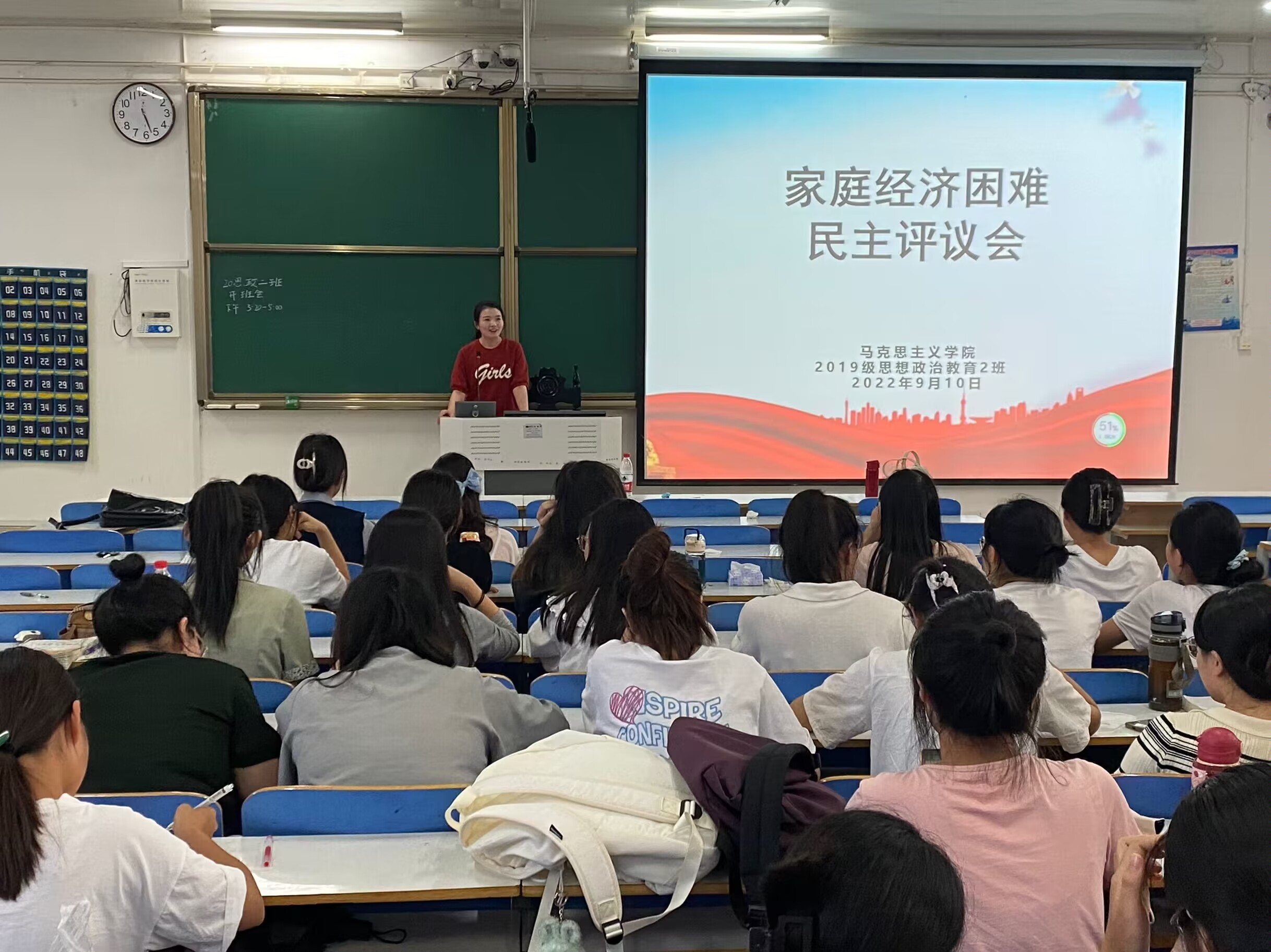 9月10日下午,小说狂人 2019级思想政治教育二班在社科楼514教室召开2022年班级贫困认定民主评议会。班主任陶青青出席会议,评议小组全体成员按时到会,小说狂人 权益保障部监督员全程监督。评议会由班长吕昂主持。