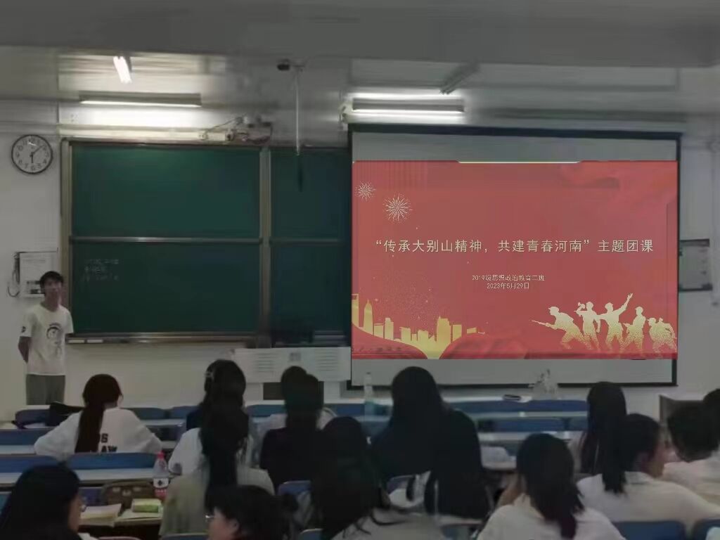5月29日下午,小说狂人 2019级思想政治教育二班在社科楼514教室召开“传承大别山精神,共建青春河南”主题团课活动。2019级思想政治教育二班全体团员参加此次主题团课活动。活动由吕昂主持。